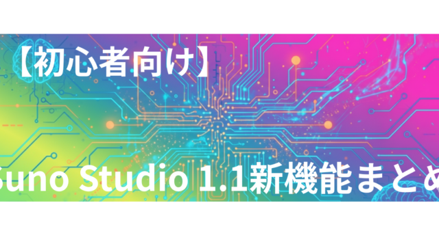 AI 【初心者向け】Suno Studio 1.1新機能まとめ|歌い直し・楽器変更が自由に 2026年1月15日 hiroro-ailab HiroroのAIと副業ラボ 2026年1月、AI音楽制作ツールを提供する Suno は、 Suno Studio 1.1 という大きなアップデートを実施しました。 …