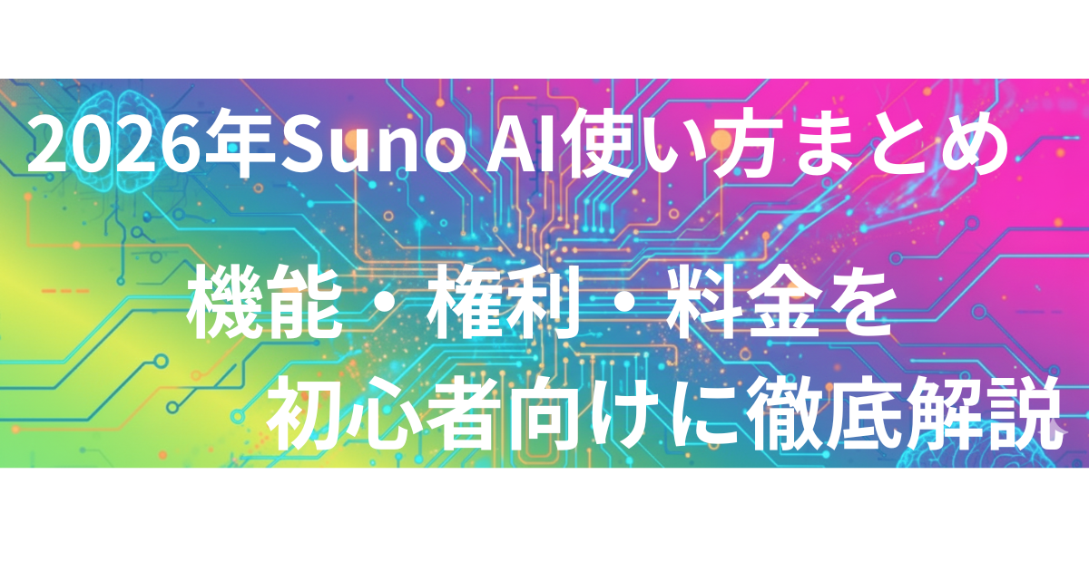 【完全版】Suno AIの使い方まとめ2026|機能・権利・料金を初心者向けに徹底解説