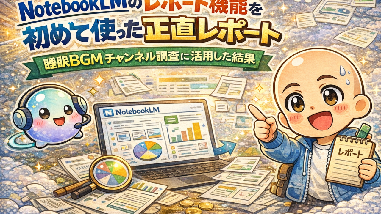 もともとの目的はシンプルで、「レポート機能がどんなものか試してみたい」というだけでした。せっかく使うなら実際の用途に近いテーマで試したほうがよいと思い、自分のチャンネル(もふもふ睡眠BGM)の運営に活かせそうな睡眠BGMチャンネルの調査をテーマに選びました。