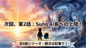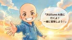 Hiroroがいよいよ最初のAI島・Suno AI島に乗り込みます。音楽の知識ゼロで挑む冒険——果たしてどんな試練が待ち受けているのか?次回もお楽しみに! |