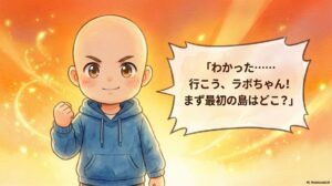 Hiroroの目標:すべてのAI島を制覇して「AI副業の達人」になること。 ラボちゃんの秘密:なぜHiroroの前に現れたのかは物語が進むにつれて明かされる。 |