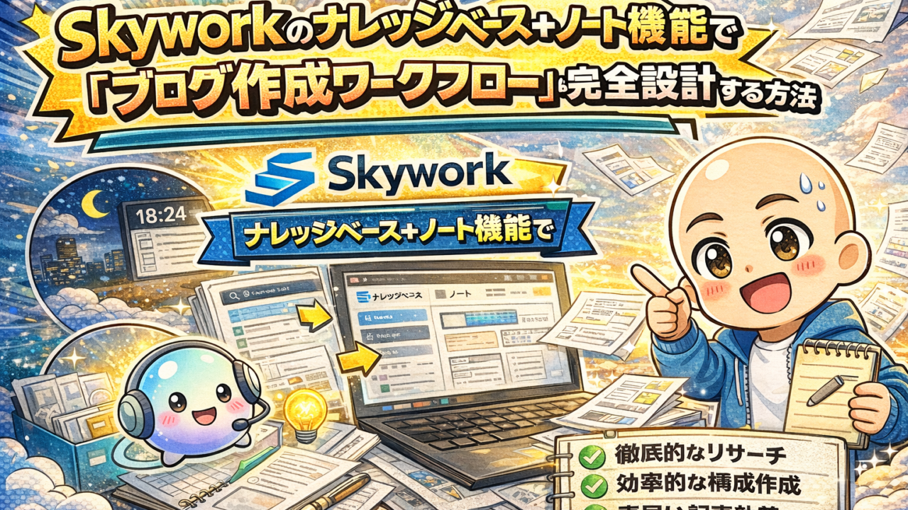 この記事では、Skywork のナレッジベース+ノート機能を使った、完全なブログ作成ワークフロー をお話しします。