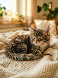 使用した画像:メインクーンの仔猫の写真(横向き・ふわふわ感のある自然な雰囲気)